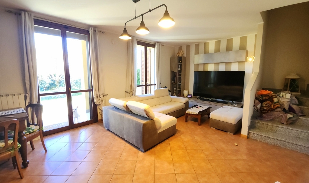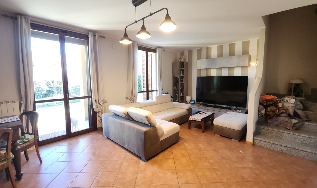 villa a schiera in vendita situata in zona residenziale. Con i suoi 5 locali e 3 servizi, questa casa si sviluppa su tre livelli, offrendo ampi spazi per ogni esigenza. L'ingresso accogliente con disimpegno conduce a un luminoso soggiorno, dotato di doppie finestre che si affacciano su un giardino riservato, ideale per momenti di relax all'aperto.