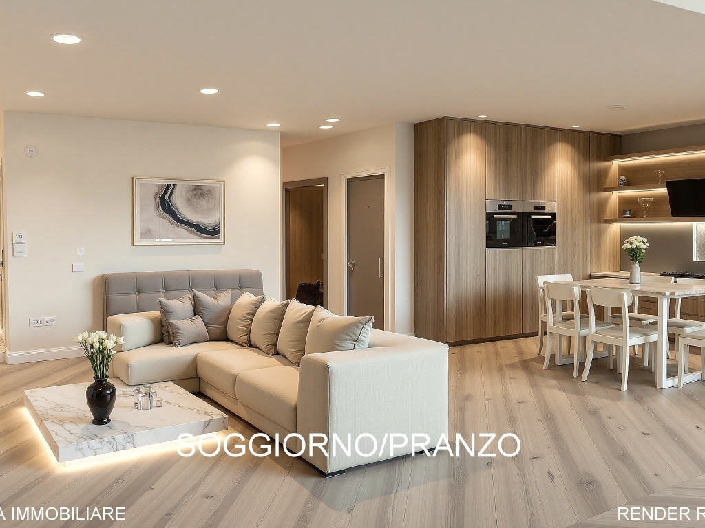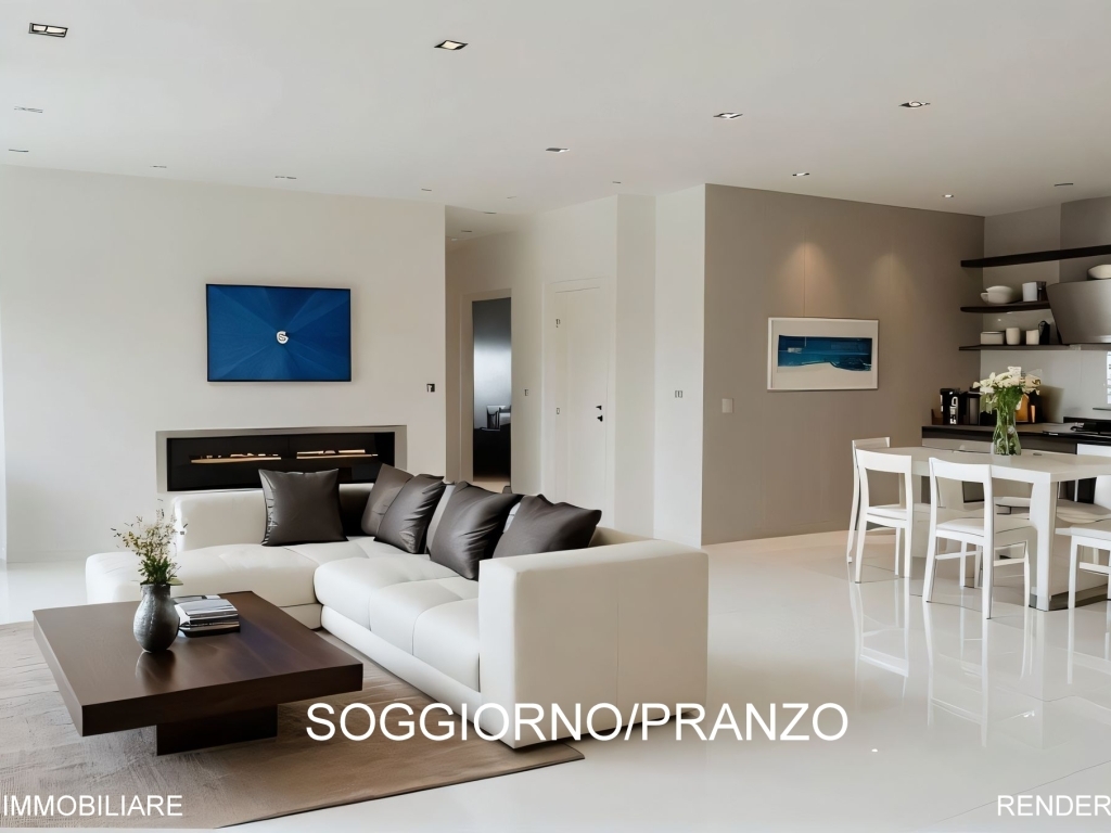 Al piano terra si trovano: Ampio soggiorno/pranzo di circa 47 m² con uscita sul portico coperto e sul giardino, Disimpegno, bagno finestrato, ripostiglio, Accesso diretto al box doppio