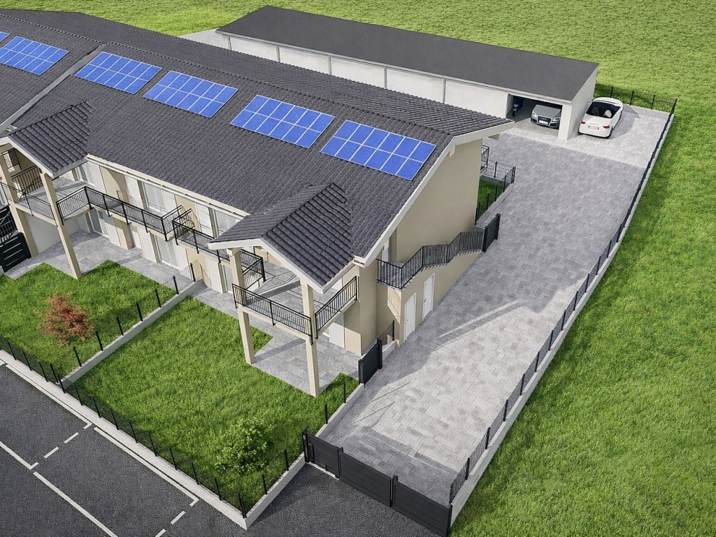 Di prossima realizzazione, complesso residenziale in classe energetica A++ composto da 6 unità immobiliari semi-indipendenti. Ogni abitazione dispone di quota di corte di proprietà pari a 1/6, ampio box auto e posto auto esclusivo all’interno della corte.