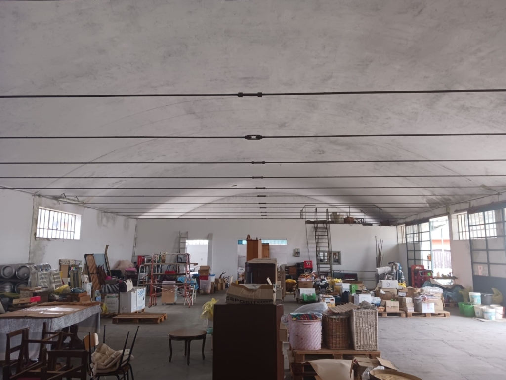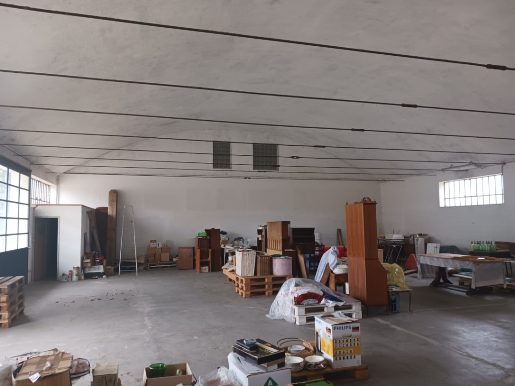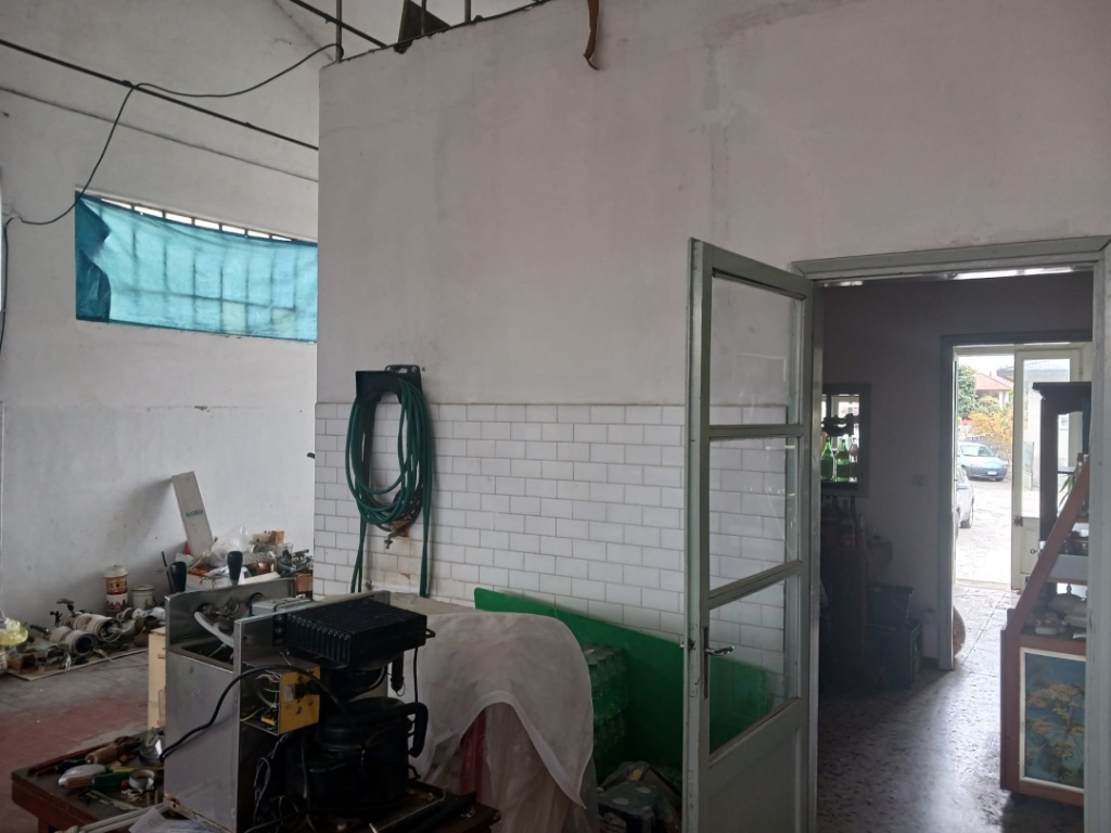 In zona semicentrale proponiamo edificio ad uso magazzino disposto su due livelli con ampio piazzale antistante. Il magazzino si compone di un piano rialzato di mq 450 oltre a mq 105 di uffici e un piano seminterrato di mq 450 accessibili sia da scala interna che da rampa carraia. Il seminterrato risulta accessibile anche da furgoni. Il piano rialzato è dotato di zona carico a mezzo di n.4 portelloni con apertura ad anta scorrevole. Il tetto del magazzino attualmente è in eternit, pertanto da smaltire, è del tipo copertura curva e presenta un'altezza media di mt 3,5. Dotato di ampio piazzale antistante, recintato, di circa mq 900.