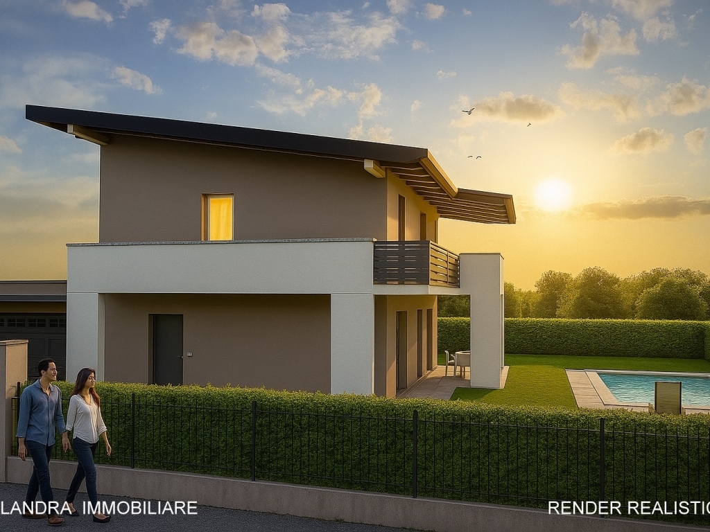 Villa indipendente di nuova costruzione, con consegna prevista entro circa 5 mesi, disposta su due livelli e costruita su un lotto di circa 560 m².